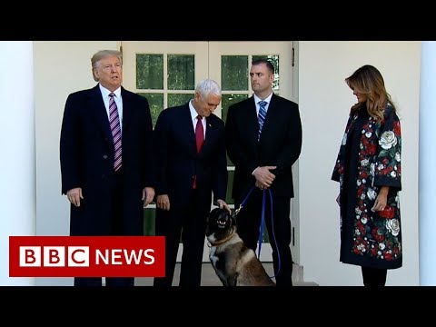 President Donald Trump introduced the media to Conan, who was injured in the US operation that killed Abu Bakr al-Baghdadi, the leader of the Islamic State (IS) group. Speaking from the White House Rose Garden, Trump jokes to reporters that they "should be careful" and that the dog is "a tough cookie". Please subscribe HERE http://bit.ly/1rbfUog